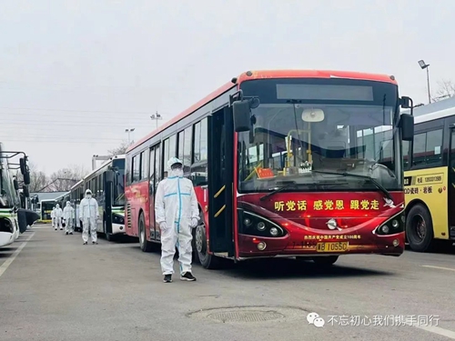 面對(duì)嚴(yán)峻的疫情防控形勢(shì),唐山公交于3月19日迅速啟動(dòng)了公司疫情防控應(yīng)急預(yù)案,總經(jīng)理劉東占帶領(lǐng)應(yīng)急領(lǐng)導(dǎo)小組成員,24小時(shí)堅(jiān)守崗位靠前指揮調(diào)度,并要求:全公司無(wú)條件堅(jiān)決迅速響應(yīng)市委市政府指令,高質(zhì)高效完成公司各項(xiàng)疫情防控工作及保障任務(wù)。與此同時(shí),所屬基層單位的10個(gè)黨總支及48個(gè)黨支部,立即通過(guò)各種形式組建了應(yīng)急領(lǐng)導(dǎo)組織以及經(jīng)嚴(yán)格培訓(xùn)的150人常備應(yīng)急公交駕駛員隊(duì)伍,未封控小區(qū)的公司黨員領(lǐng)導(dǎo)干部堅(jiān)守崗位,除做好場(chǎng)區(qū)日常防控、車(chē)輛技術(shù)檢測(cè)、能源補(bǔ)給、消毒消殺及職工健康排查任務(wù)外,隨時(shí)待命做好應(yīng)急任務(wù)響應(yīng),確保一有情況隨時(shí)拉得出、打的贏。