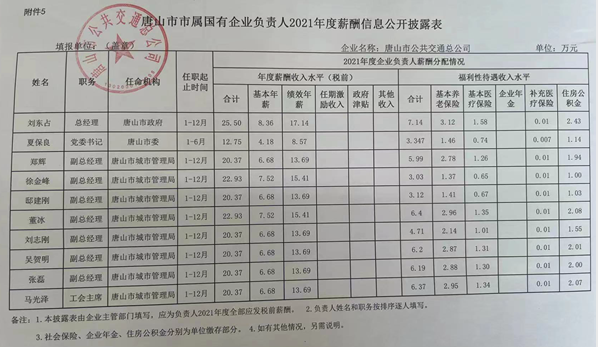 唐山市市屬國有企業負責人2021年薪酬信息公開批露表