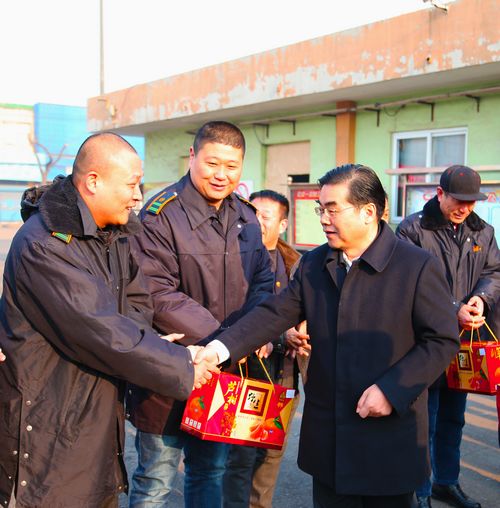 2月8日,農歷大年初一,市委副書記、市長丁繡峰來到公交公司南站樞紐站,給春節期間堅守崗位、辛勤工作的公交職工送去市委、市政府的問候和祝福。市政府秘書長張會春、城管局黨委書記局長冀桂梅陪同慰問。